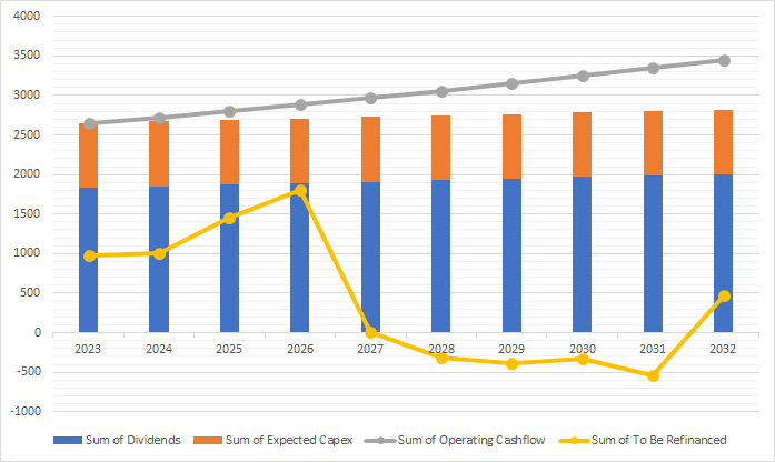 Their interest rates on that much debt will be going up from 4.5% to what I would expect to be around 7%, which will have major impacts in the cashflow they will have available to distribute to shareholders.